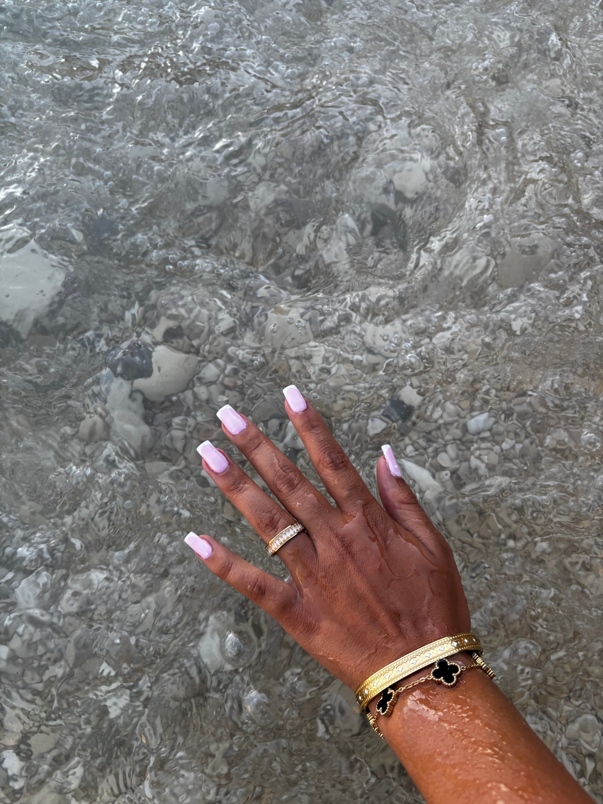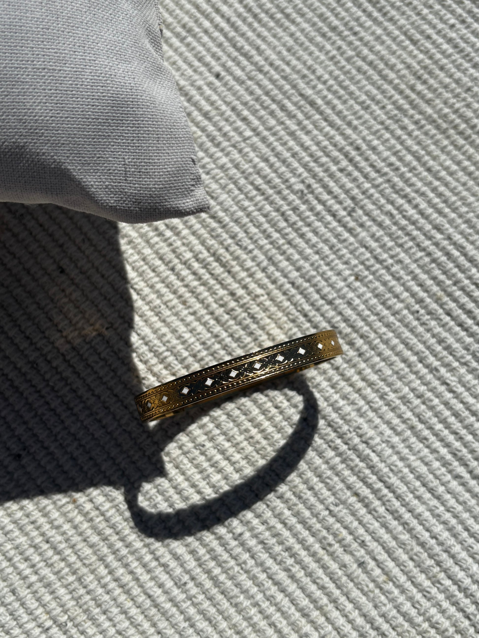 Pure, élégant et essentiel. Le jonc Aylina joue sur le contraste subtil entre blanc lumineux et doré raffiné pour créer un bijou à la fois discret et affirmé. Minimaliste dans sa forme, il se porte seul ou en accumulation, offrant une touche de modernité et de sophistication à chaque poignet.